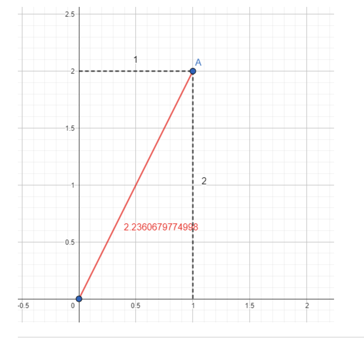 Cho hai số nguyên x, y là toạ độ của điểm A(x, y). Hãy tính khoảng cách của điểm A đến gốc toạ độ O(0,0).