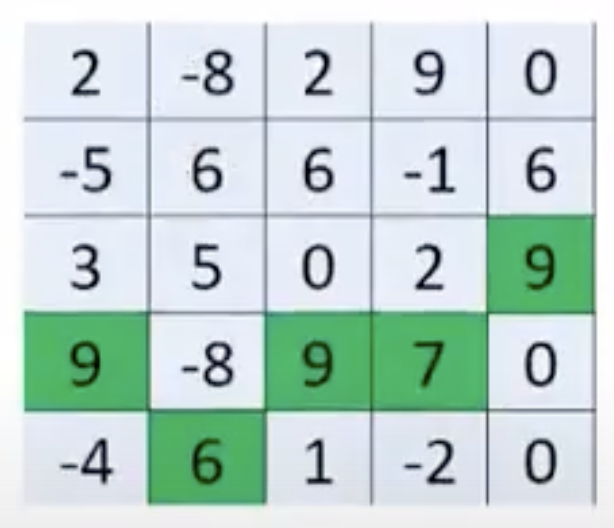 Cho măng 2 chiều A gồm N hàng và N cột, hàng được đánh số từ 1 đến N từ trên xuống dưới, cột được đánh số từ 1 tới N từ trái sang phải, hãy tìm 1 đường đi từ một ô ở cột 1 tới một ô ở cột N sao cho các phần tử trên đường đi đó là lớn nhất có thế. Biết ràng ở mỗi bước đi từ ô hiện tại (i, j) chỉ có thể đi sang phải (i, j + 1) hoặc đi xưỗng ô dưới bên phải (i + 1, j + 1) hoặc đi lên trên bên phải (i - 1, j + 1). Hãy tìm đường đi có tổng các số trên đường đi là lớn nhất.