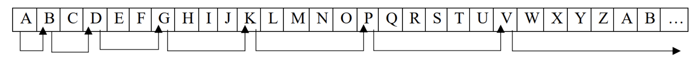 Cho một robot được lập trình di chuyển trên một hàng ngang gồm các ô vuông. Mỗi ô được đặt tên bằng các kí tự theo thứ tự từ 'A' đến 'Z' và được lặp lại vô hạn. Ban đầu robot xuất phát ở ô thứ 1 có tên là 'A' và nhảy đến các ô tiếp theo quy luật: lần 1 nhảy 1 ô, lần 2 nhảy 2 ô, lần 3 nhảy 3 ô, ..., lần N nhảy N ô. Vậy sau N lần nhảy thì robot đang ở ô nào?