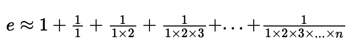 Số e cũng như số pi đóng vai trò không thể thiếu trong toán học. Giống như hằng số T, e cũng là một số vô tỉ (không thể biểu diễn thành tỉ số giữa hai số nguyên). Cho số nguyên dương n, hãy tính giá trị xấp xỉ của số e theo công thức sau: